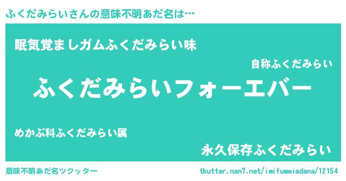 | 自動車の名前っぽいあだ名 | 『フクア』『フンR』『ランフクギーニ』 |