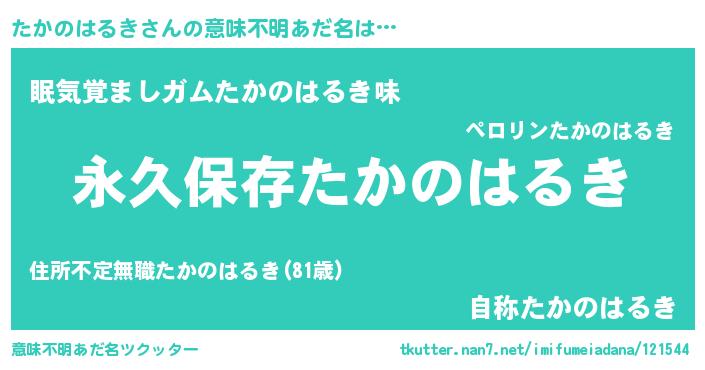 | ヘコむあだ名 | 『たかのはるき(震え声)』『たかっふぃ~』 |