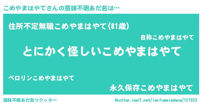 | ヘコむあだ名 | 『こめっぺ』『こめやまはやて(震え声)』 |
