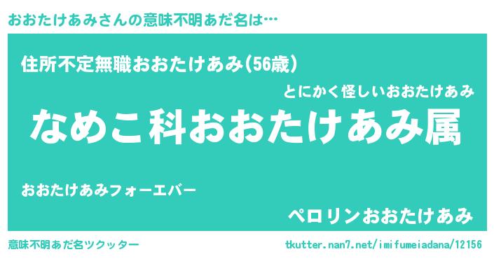 | 男性向けラノベタイトル風あだ名 | 『転生したらおおたけあみだった件』 |