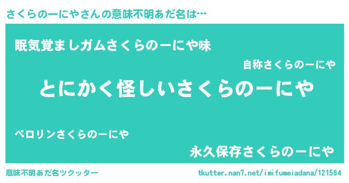 | 女子向けラノベタイトル風あだ名 | 『さくらのーにやの卵を拾いまして』 |