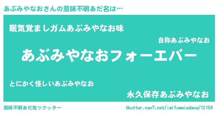 | 欧米人風あだ名 | 『あぶみやなおクリステル』 |