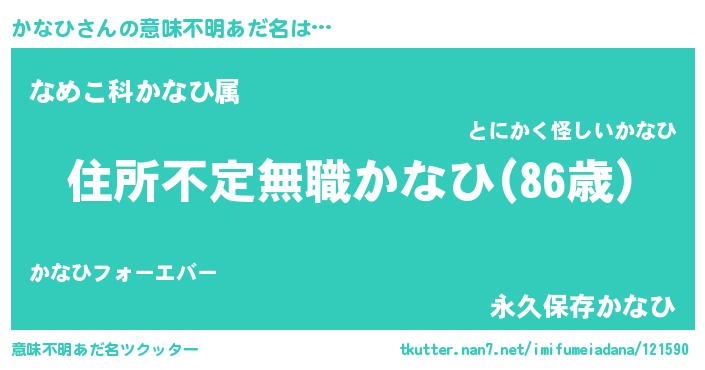 | 男性向けラノベタイトル風あだ名 | 『この素晴らしい世界にかなひを!』 |