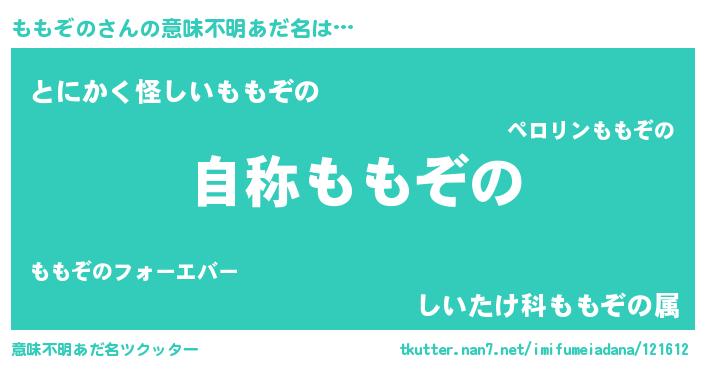| 男性向けラノベタイトル風あだ名 | 『Re:ももぞのから始める異世界生活』 |