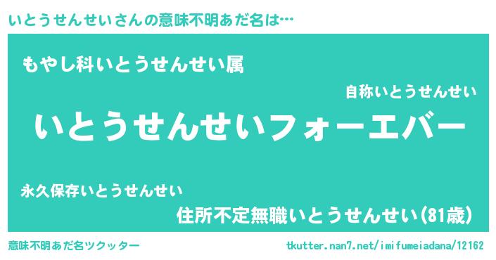 | 男性向けラノベタイトル風あだ名 | 『やはりいとうせんせいの青春ラブコメはまちがっている 』 |