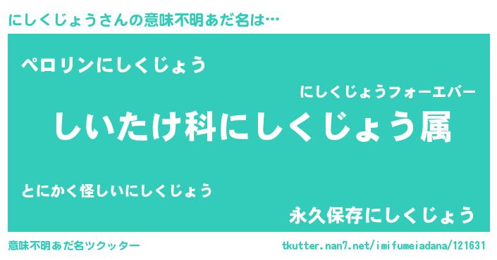| 料理風あだ名 | 『にしくじょうごはん』 |