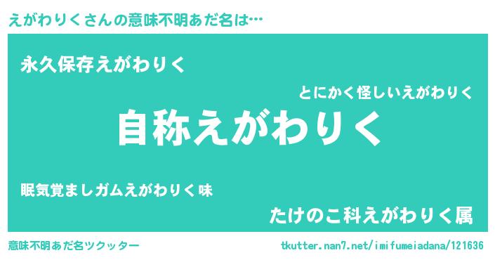 | 欧米人風あだ名 | 『ケンブリッジえがわりく』 |