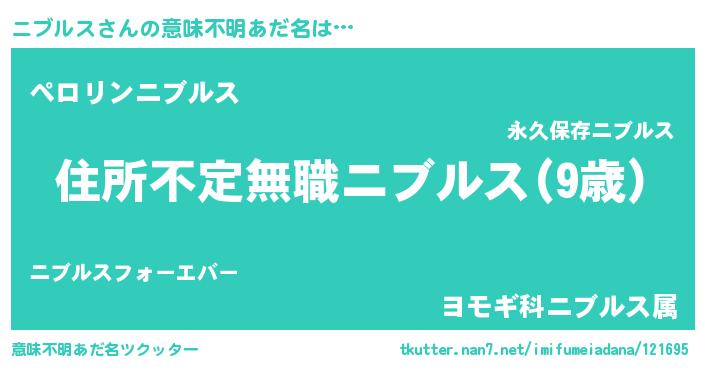 | 胡散臭い通販商品みたいなあだ名 | 『あなたにだけ特別に提供する100年もののヴィンテージワイン…その名も「ニブルス」』 |