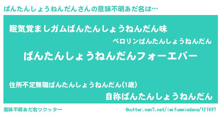 | ファンタジー風あだ名 | 『エターナルバンタンショウネンダンー』 |