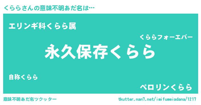 | 胡散臭い通販商品みたいなあだ名 | 『絶対に幸福をもたらす水素水…その名も「くらら」』 |