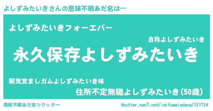 | 胡散臭い通販商品みたいなあだ名 | 『来世でも幸せになれる水素水…その名も「よしずみたいき」』 |