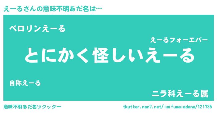 | 胡散臭い通販商品みたいなあだ名 | 『信頼と実績のサプリメント…その名も「えーる」』 |