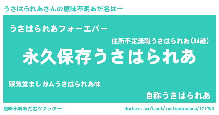 | ヘコむあだ名 | 『うさはられあ(笑)』『豆乳』 |