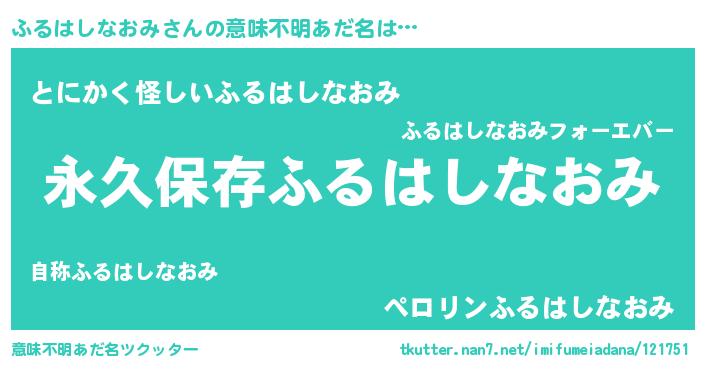 | 胡散臭い通販商品みたいなあだ名 | 『絶対に幸福をもたらす健康食品…その名も「ふるはしなおみ」』 |