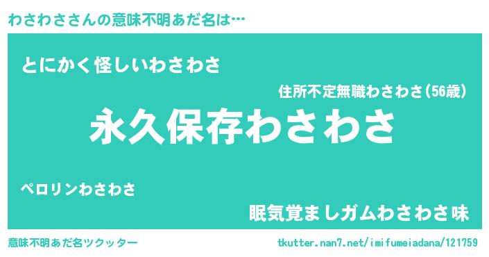 | ヘコむあだ名 | 『わさわさ(笑)』『わさ太郎』 |