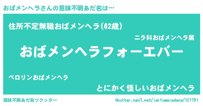 | ヒーロー風カッコイイあだ名 | 『ウルトラおばメンヘラマン』 |