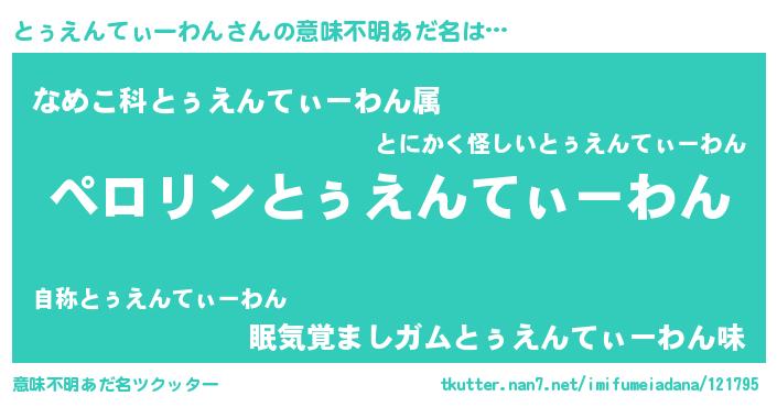 | 2回繰り返すあだ名 | 『とぅとぅ』『わーわー』『ぼそぼそ』 |
