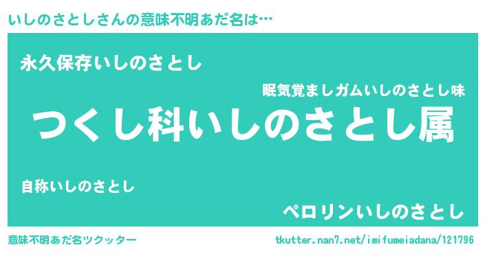 | 男性向けラノベタイトル風あだ名 | 『いしのさとし~年齢イコール彼女いない歴の魔法使い~』 |