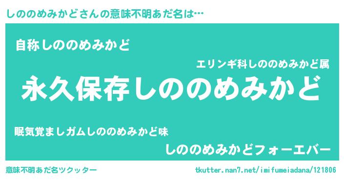 | ヘコむあだ名 | 『しののめみかど(小並感)』『牛乳』 |