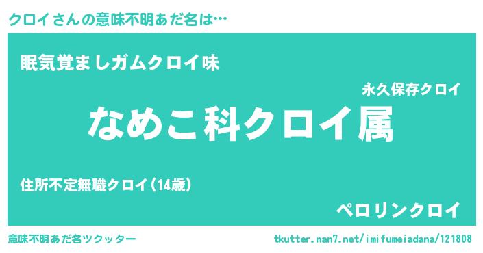 | 男性向けラノベタイトル風あだ名 | 『転生したらクロイだった件』 |