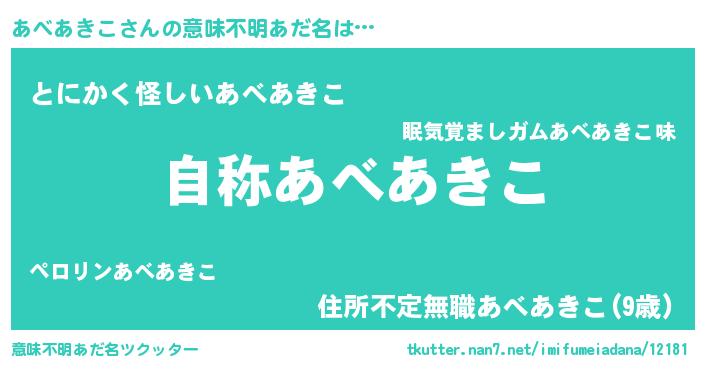 | ポケモン風あだ名 | 『アベセウス』『ヒアベアキコ』 |