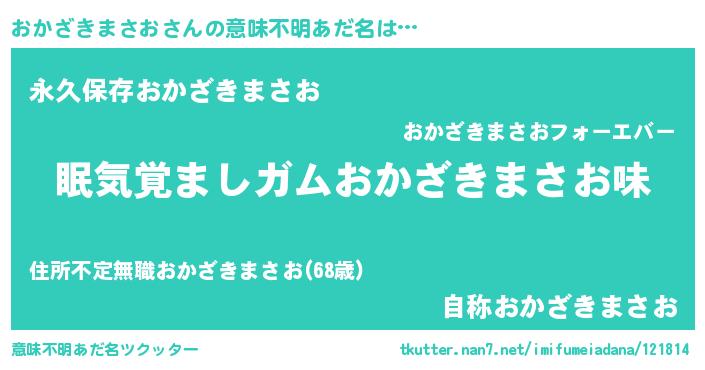 | 男性向けラノベタイトル風あだ名 | 『ノーゲーム・ノーオカザキマサオ』 |