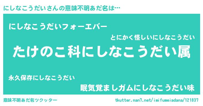 | 料理風あだ名 | 『にしなこうだいごはん』 |