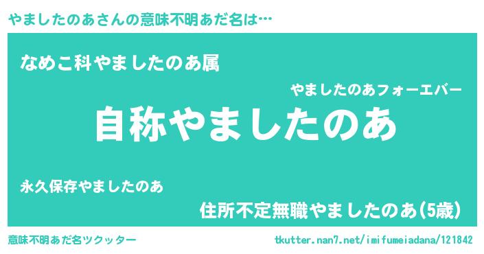 | 男性向けラノベタイトル風あだ名 | 『Re:やましたのあから始める異世界生活』 |