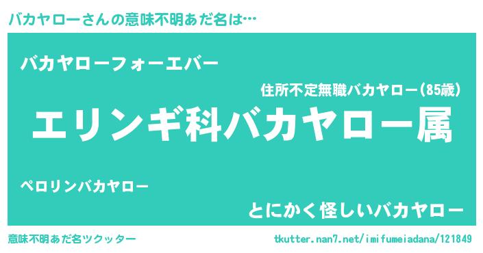 | 男性向けラノベタイトル風あだ名 | 『バカヤロースレイヤー』 |