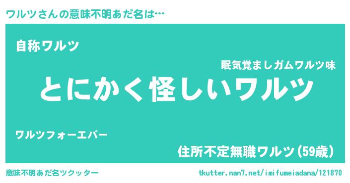 | 胡散臭い通販商品みたいなあだ名 | 『信頼と実績のサプリメント…その名も「ワルツ」』 |