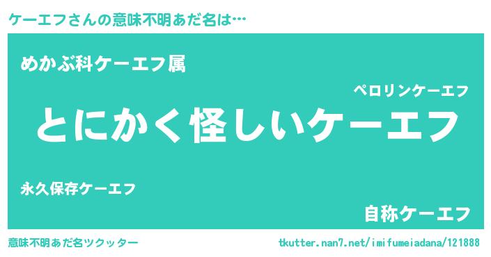 | ヒーロー風カッコイイあだ名 | 『暗黒騎士ケー』『ウルトラ戦士ケーエフ』 |