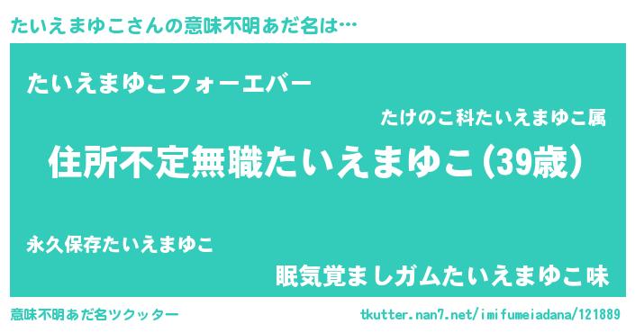 | ヘコむあだ名 | 『なまこ酢』『たいえまゆこ(爆)』 |