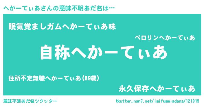 | ヘコむあだ名 | 『へかーてぃあ(小並感)』『へかっふぃ~』 |