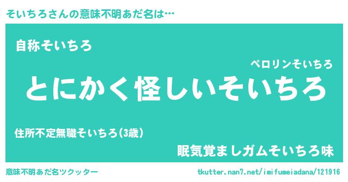 | 胡散臭い通販商品みたいなあだ名 | 『信頼と実績のサプリメント…その名も「そいちろ」』 |