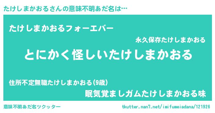 | ポケモン風あだ名 | 『ヒタケシマカオル』『タケシダネ』 |
