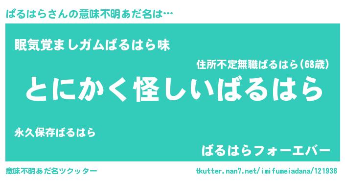| 胡散臭い通販商品みたいなあだ名 | 『信頼と実績のネックレス…その名も「ばるはら」』 |