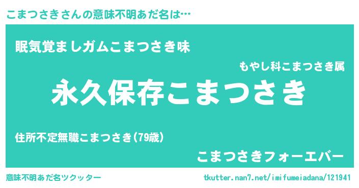 | 男性向けラノベタイトル風あだ名 | 『こまつさきに滅ぼされるだけの簡単なお仕事です』 |