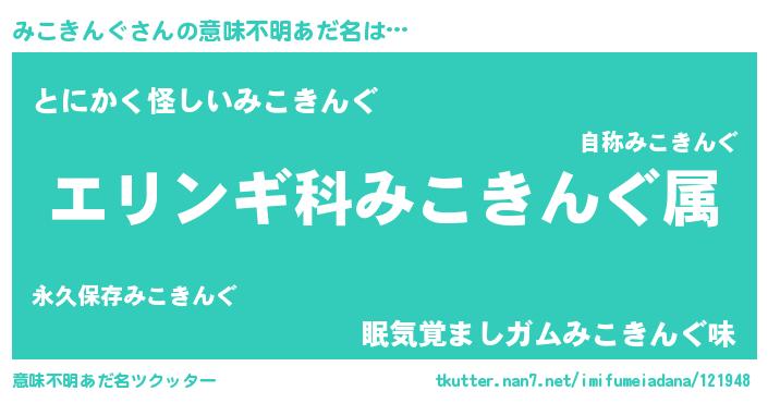 | 男性向けラノベタイトル風あだ名 | 『緋弾のミコキング』 |