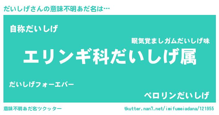 | 男性向けラノベタイトル風あだ名 | 『ダイシゲスレイヤー』『だいしげの憂鬱』 |