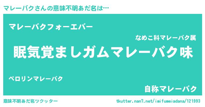 | 欧米人風あだ名 | 『ダニエルマレーバク』 |