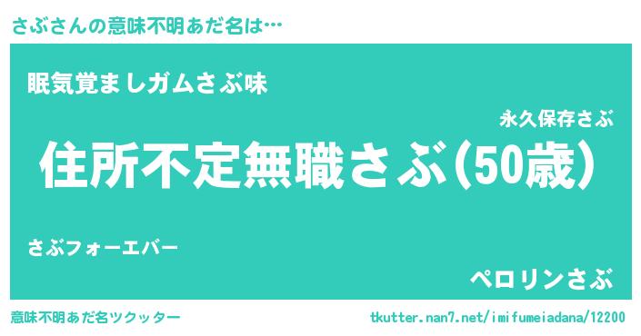 | 恥ずかしいあだ名 | 『ボンバーヘッドさぶ』『プリティーさぶ』 |
