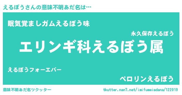 | 料理風あだ名 | 『えるぼうごはん』『えるぼうのトマト煮』 |