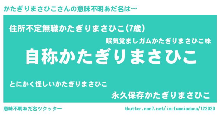 | 肩書あだ名 | 『かたぎりまさひこ総統』 |