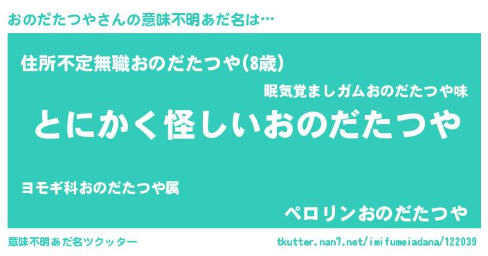 | 男性向けラノベタイトル風あだ名 | 『おのだたつやの嫁は女の子じゃないと思った?』 |