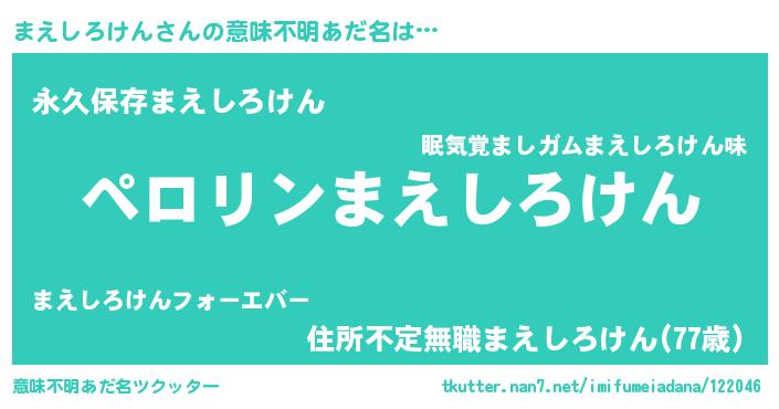 | 胡散臭い通販商品みたいなあだ名 | 『必ず成功する霊験あらたかなお札…その名も「まえしろけん」』 |