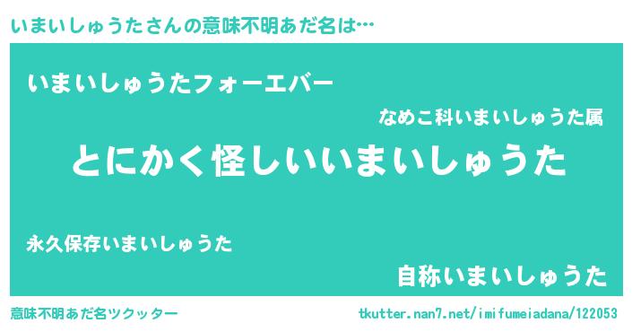 | ポケモン風あだ名 | 『ヒイマイシュウタ』『イマイダネ』 |