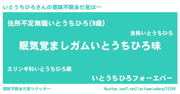 | 男性向けラノベタイトル風あだ名 | 『おまえをオタクにしてやるから、俺をいとうちひろにしてくれ! 』 |