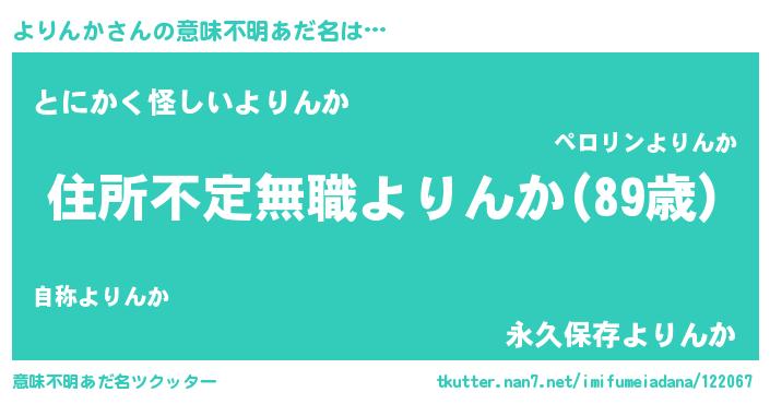 | ヘコむあだ名 | 『よりぷりん』『よりんか(笑)』 |