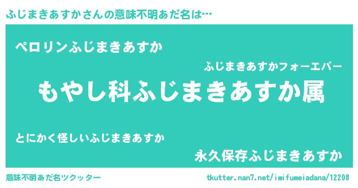 | 胡散臭い通販商品みたいなあだ名 | 『モテモテ間違いなし霊験あらたかなお札…その名も「ふじまきあすか」』 |