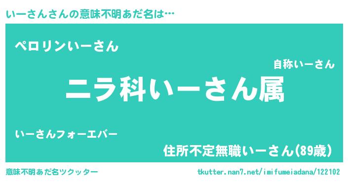 | 胡散臭い通販商品みたいなあだ名 | 『億万長者になれる水晶球…その名も「いーさん」』 |